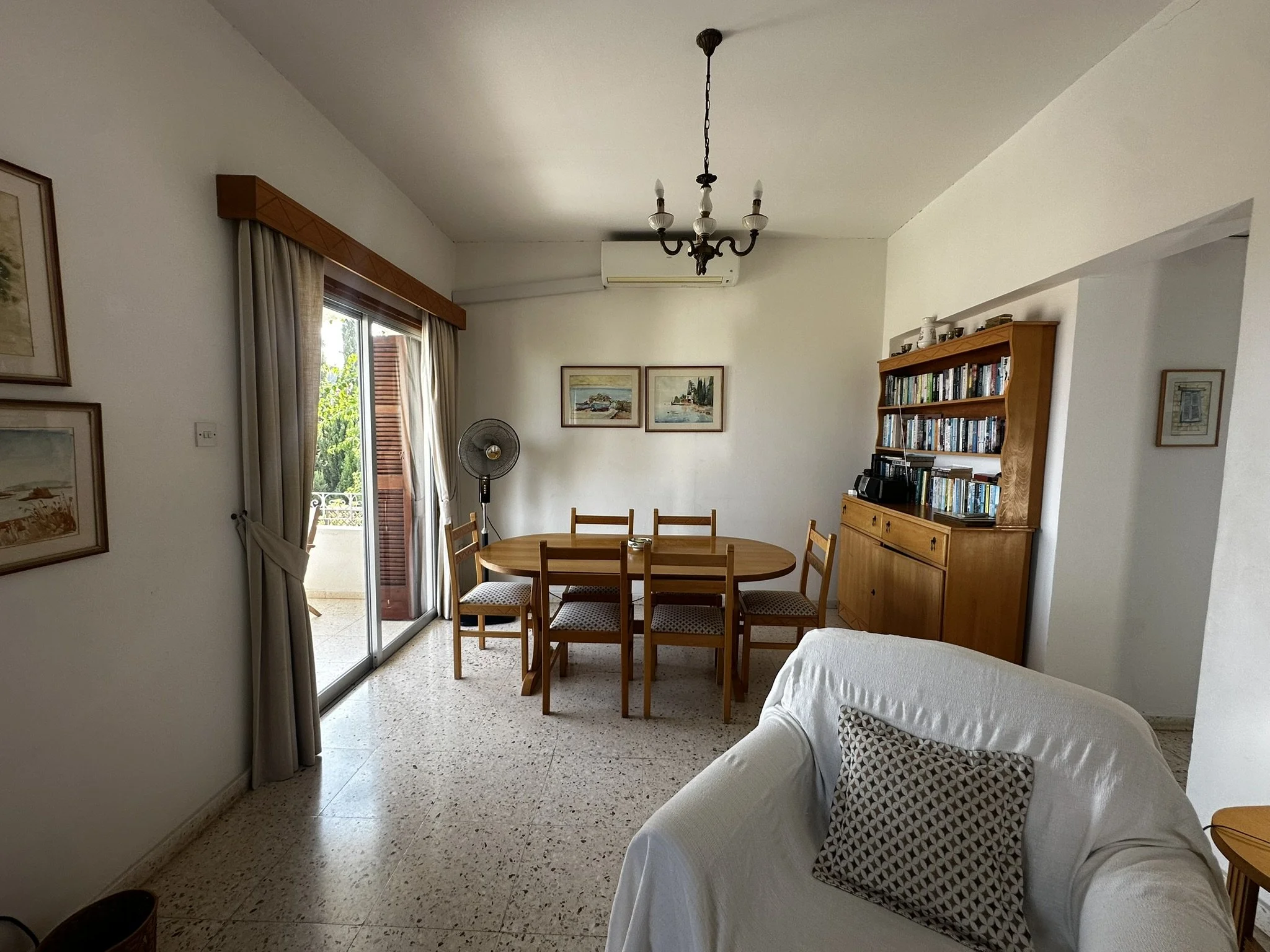The villa has a spacious hall with a marble floor, a sofa and table. From the hall, steps lead up to the open plan dining and sitting area with A/C. Two large sofas with a matching chair face sliding glass doors that open onto the balcony revealing fantastic views to the sea.